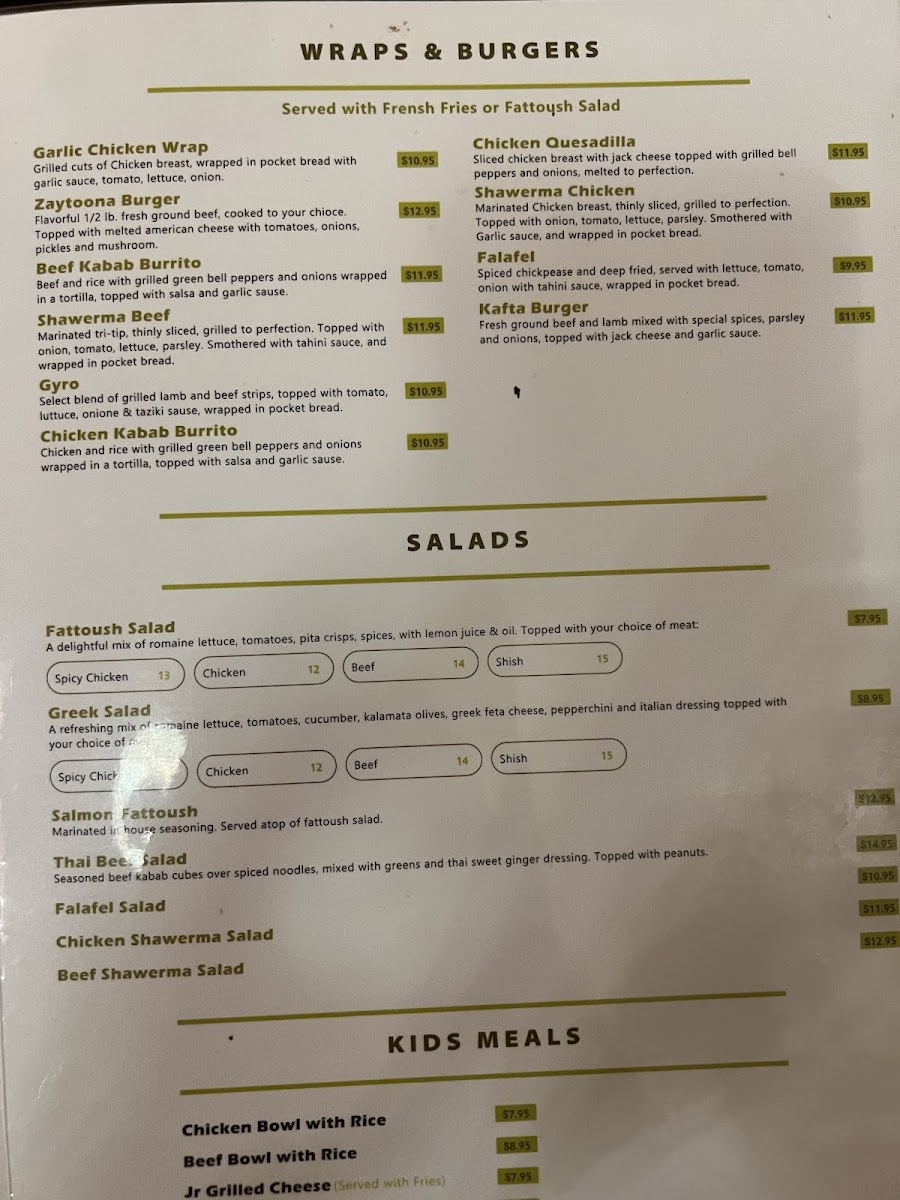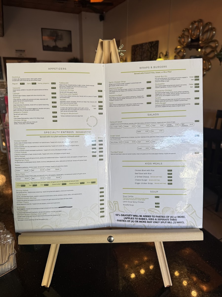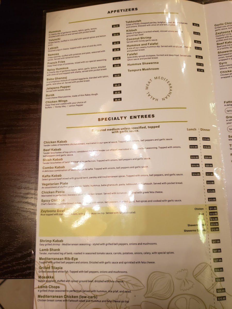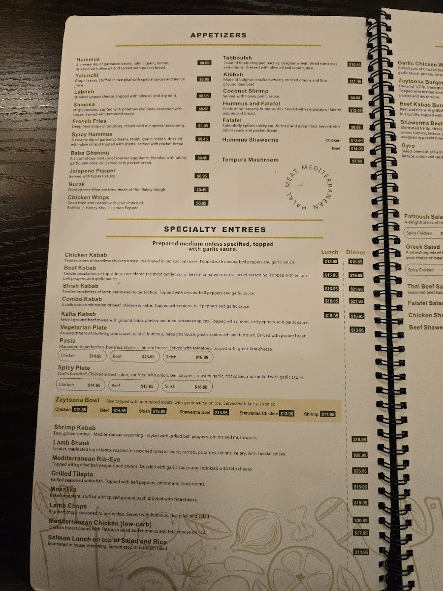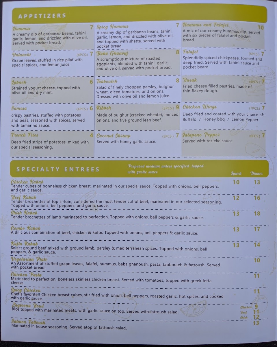 As you enjoy your meal, consider sipping on one of their refreshing drinks. The Virgin Mojito is a popular choice, delivering a burst of flavor fit for any occasion. And with something for everyone on the menu—from appetizers to filling entrees—Zaytoona is a place that invites repeat visits for its delicious offerings and stellar service.
