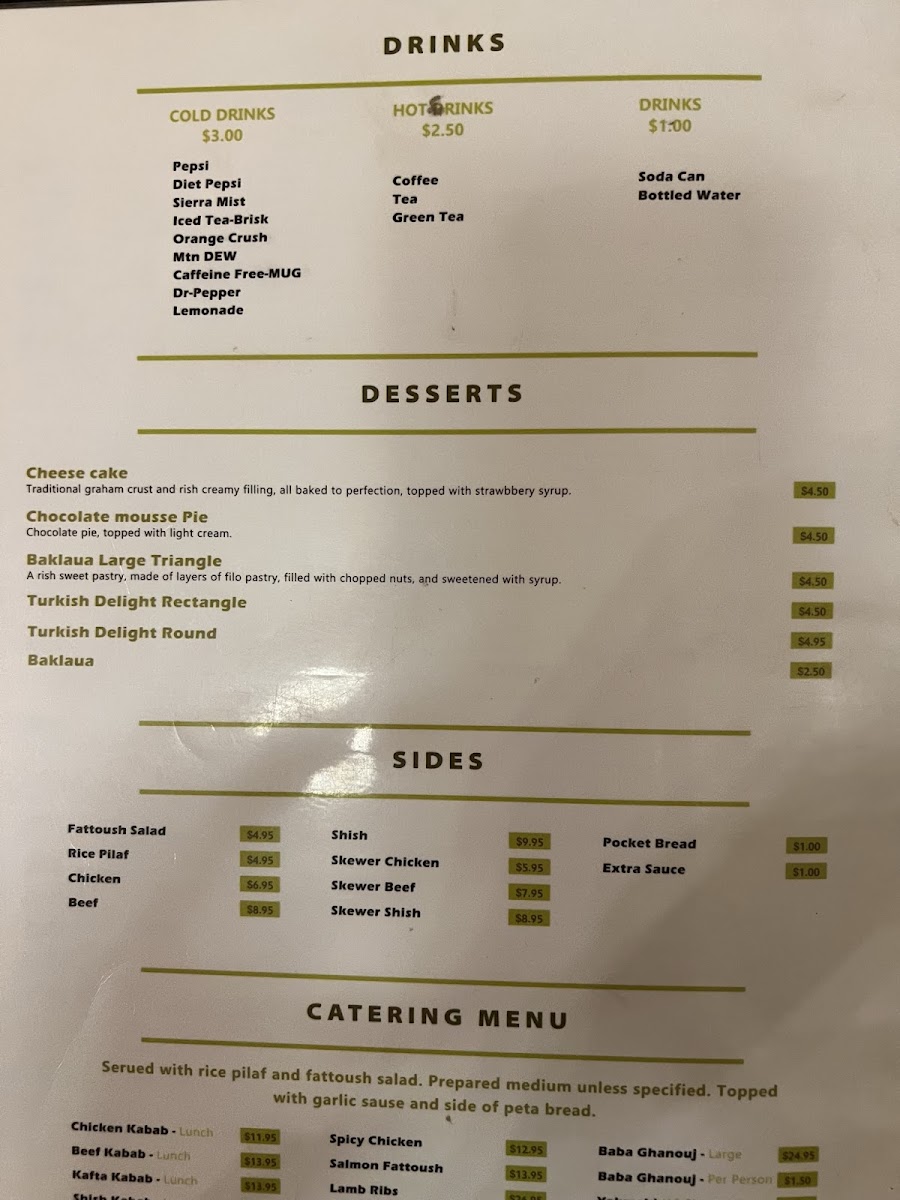 If you fancy something lighter, the Hummus with Shawerma is a highlight—choose from beef or chicken to satisfy your taste buds. And don’t forget to indulge in their selection of baklava, a sweet treat that has garnered praise from many. Amber Sparxs, one satisfied diner, couldn’t resist trying every kind of baklava on the menu, declaring it “sooooo good!”